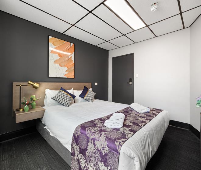 King rooms are designed for individuals and couple travellers. Featuring the same tastefully furnished, modern décor as the Twin Rooms, they offer the oversize comfort of a king bed where you can relax and watch a movie from our Netflix-ready, smart TVs or stay in contact with the outside world using our free Wi-Fi
